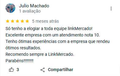 Logotipo da agência digital LinkMercado em cinza e vermelho, com uma linha amarela abaixo. O texto diz