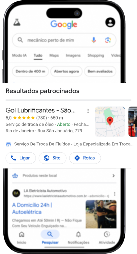 • Rastreamento preciso: usamos Call Tracking para identificar a origem e a qualidade dos resultados gerados — total transparência.